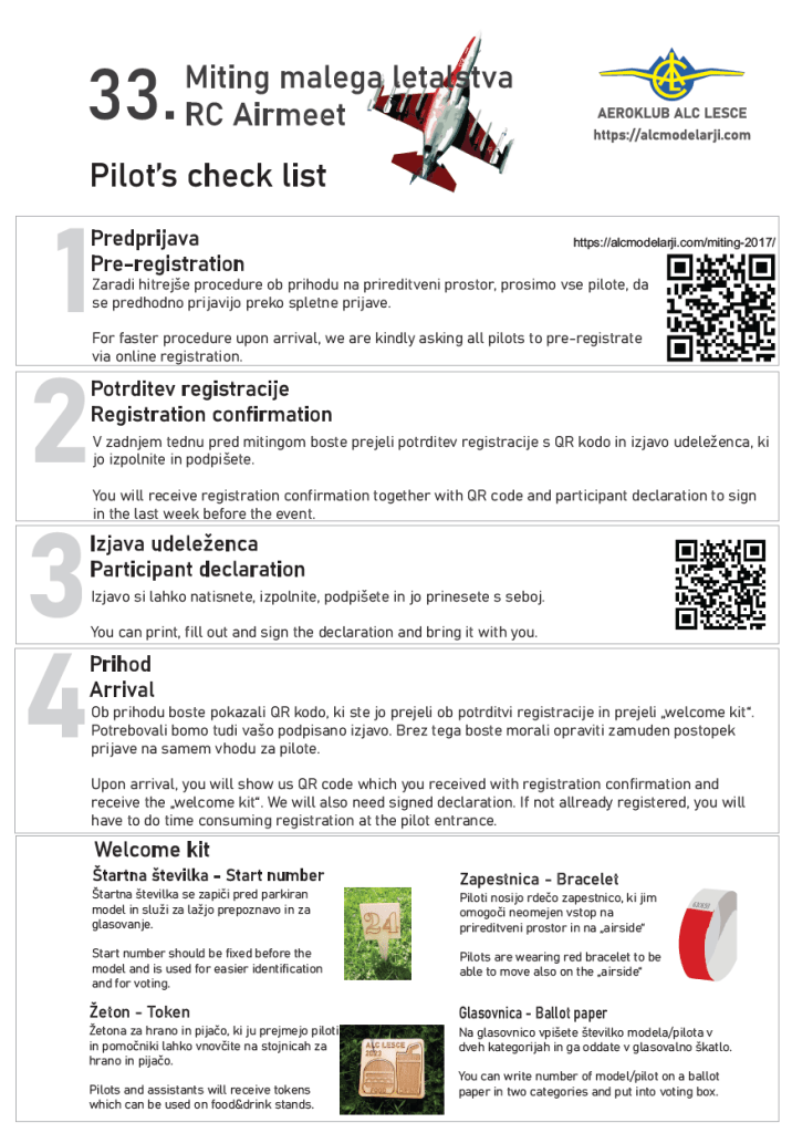 Pripravili smo check listo za pilote, ki prihajajo na naš miting. V nekaj korakih pojasnjujemo kaj je potrebno storiti pred prihodom na miting, da bo vse skupaj teklo bolj tekoče.